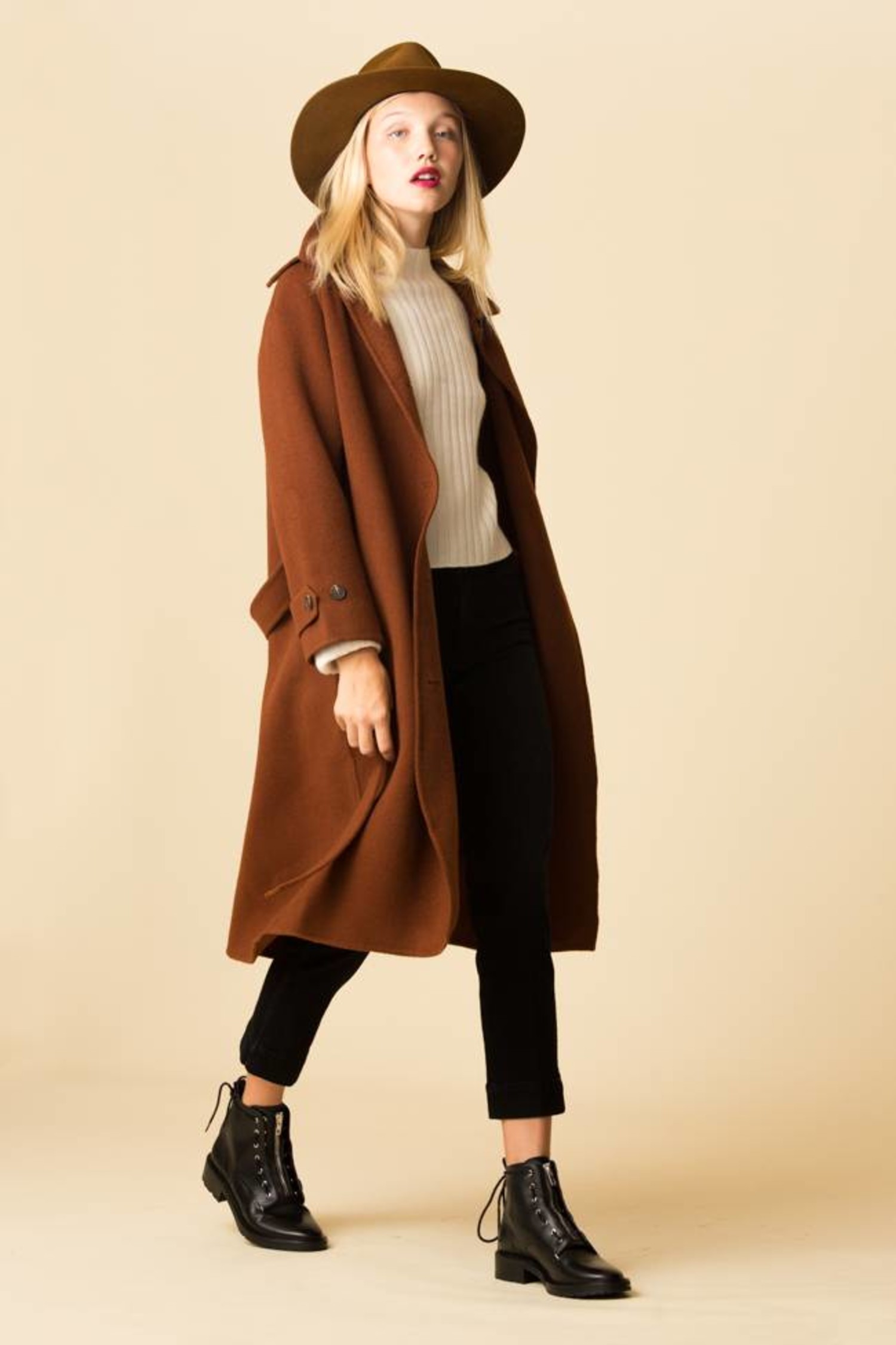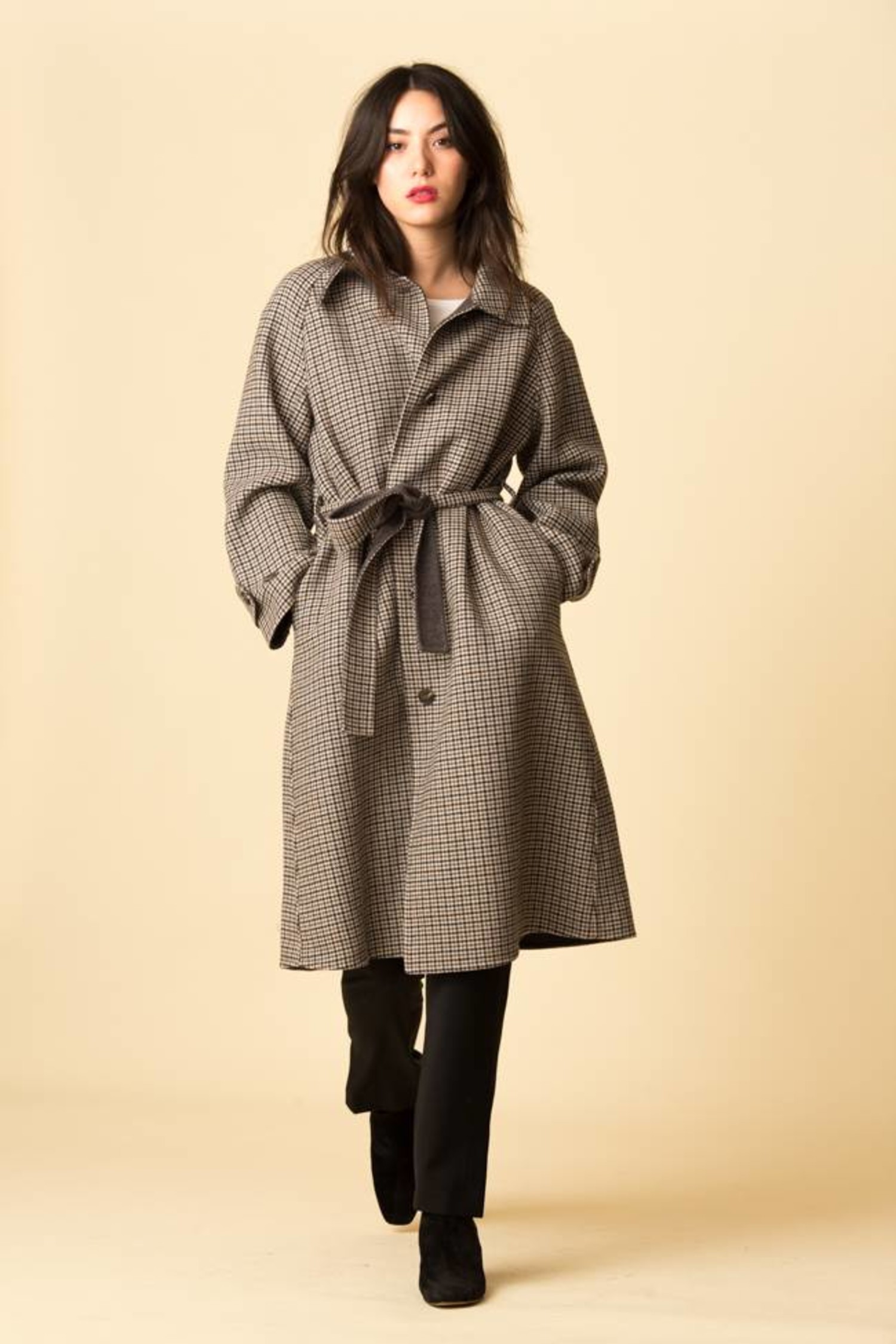 Herringbone High Neck Handmade Coat Light Beige Mijeong Park La Based Womenswear Label